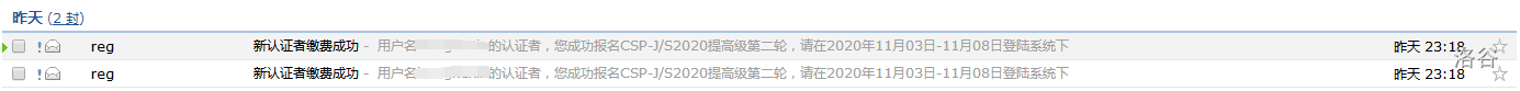 论CCF给我发了两封缴费成功的邮件